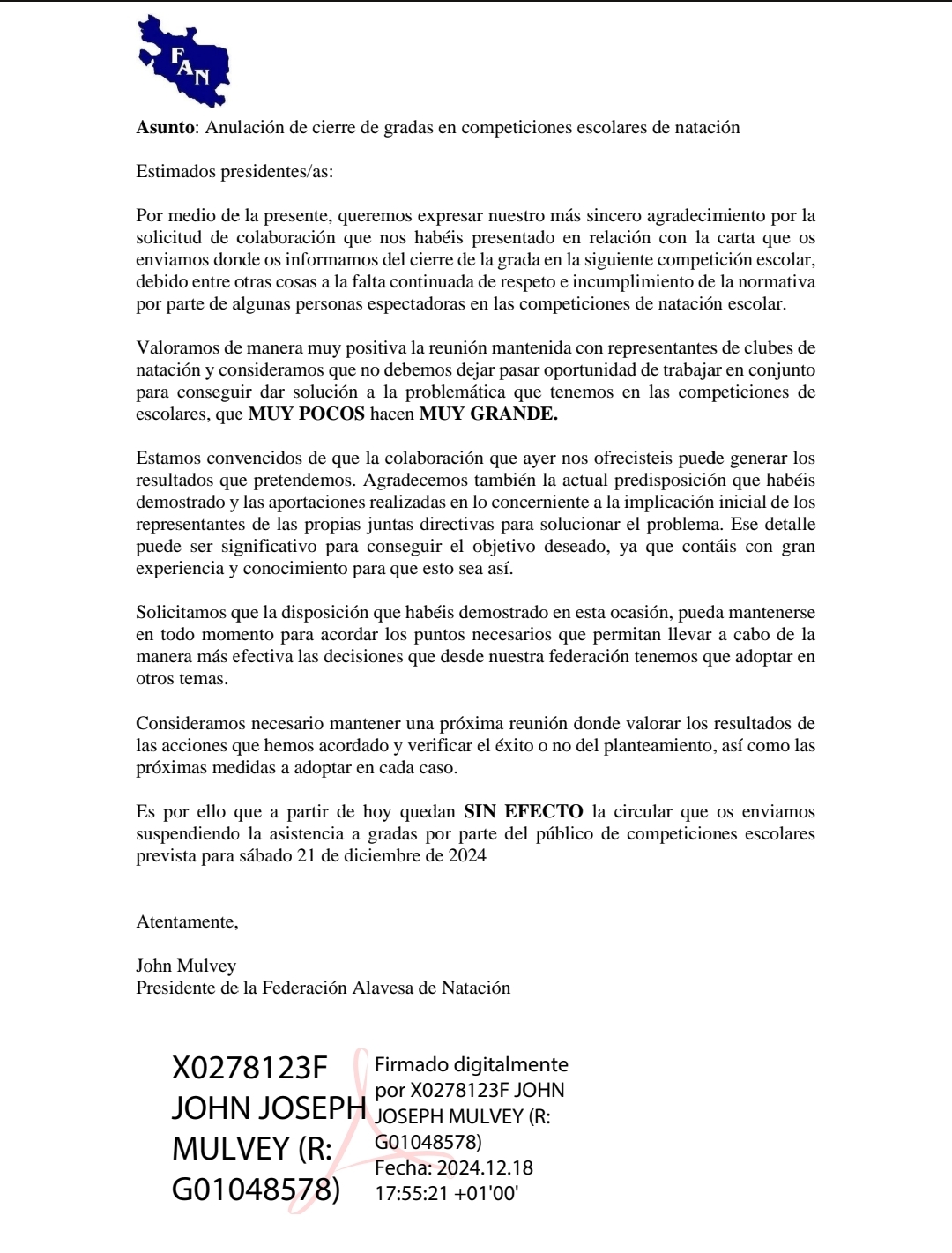 Queremos expresar nuestro más sincero agradecimiento por la participación en la competición celebrada este fin de semana a los clubes. La presencia de sus deportistas y su actitud han contribuido de manera decisiva al buen desarrollo del evento.
