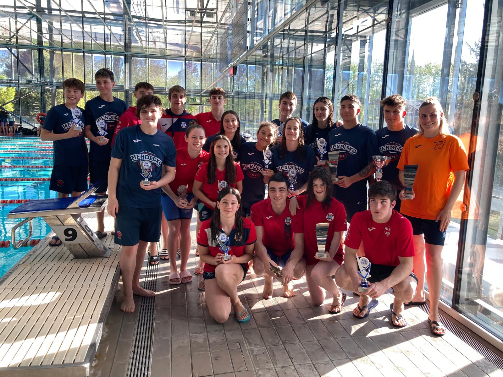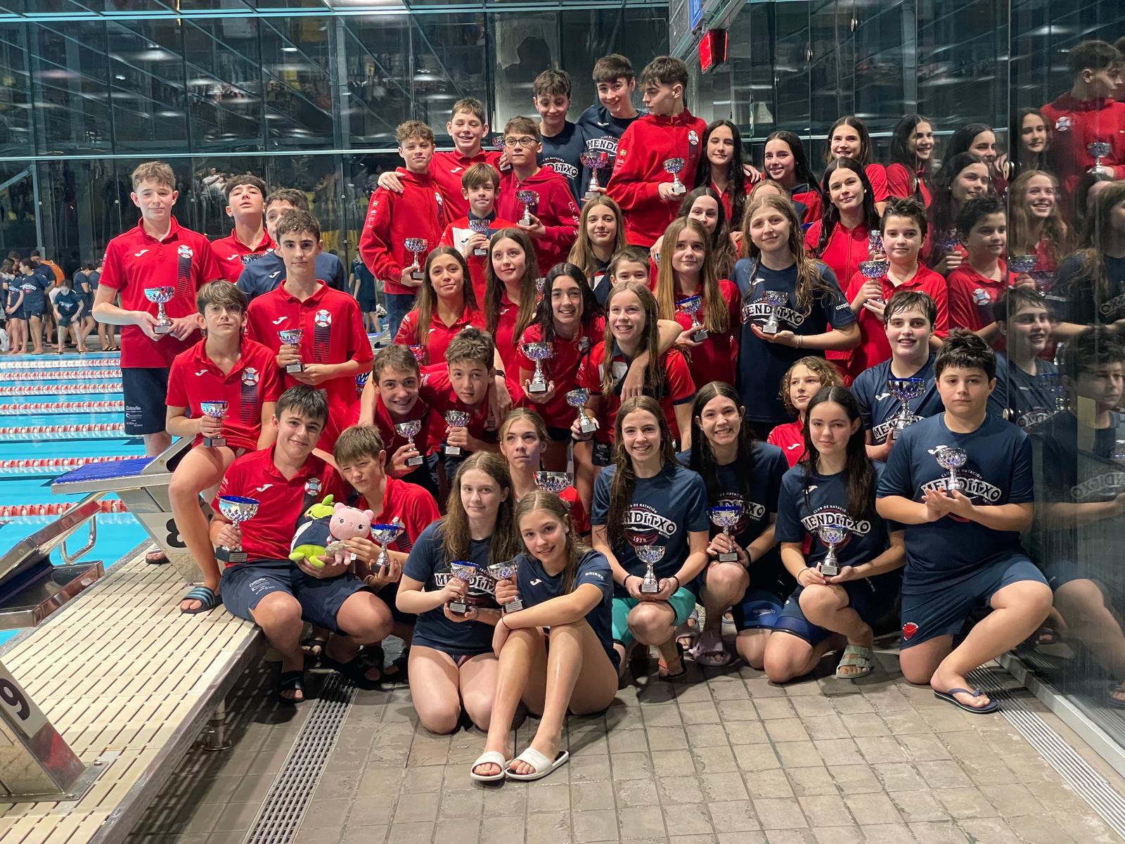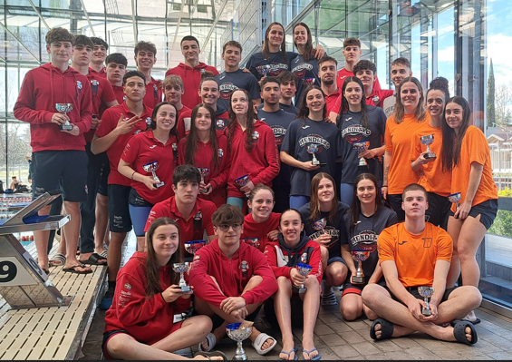 El CN Menditxo logró un total de 12 medallas, todas a cargo de su equipo femenino: 3 oros, 5 platas y 4 bronces, destacando las preciadas medallas de los relevos a cargo de Eider Fernández, Iris Lizarduy, Nayra Ortega e Izaro Ruiz, que consiguieron el bronce en el 4 x 100m Libre (4:22.02) y un disputado oro en 4 x 100m Estilos (4:52.19).