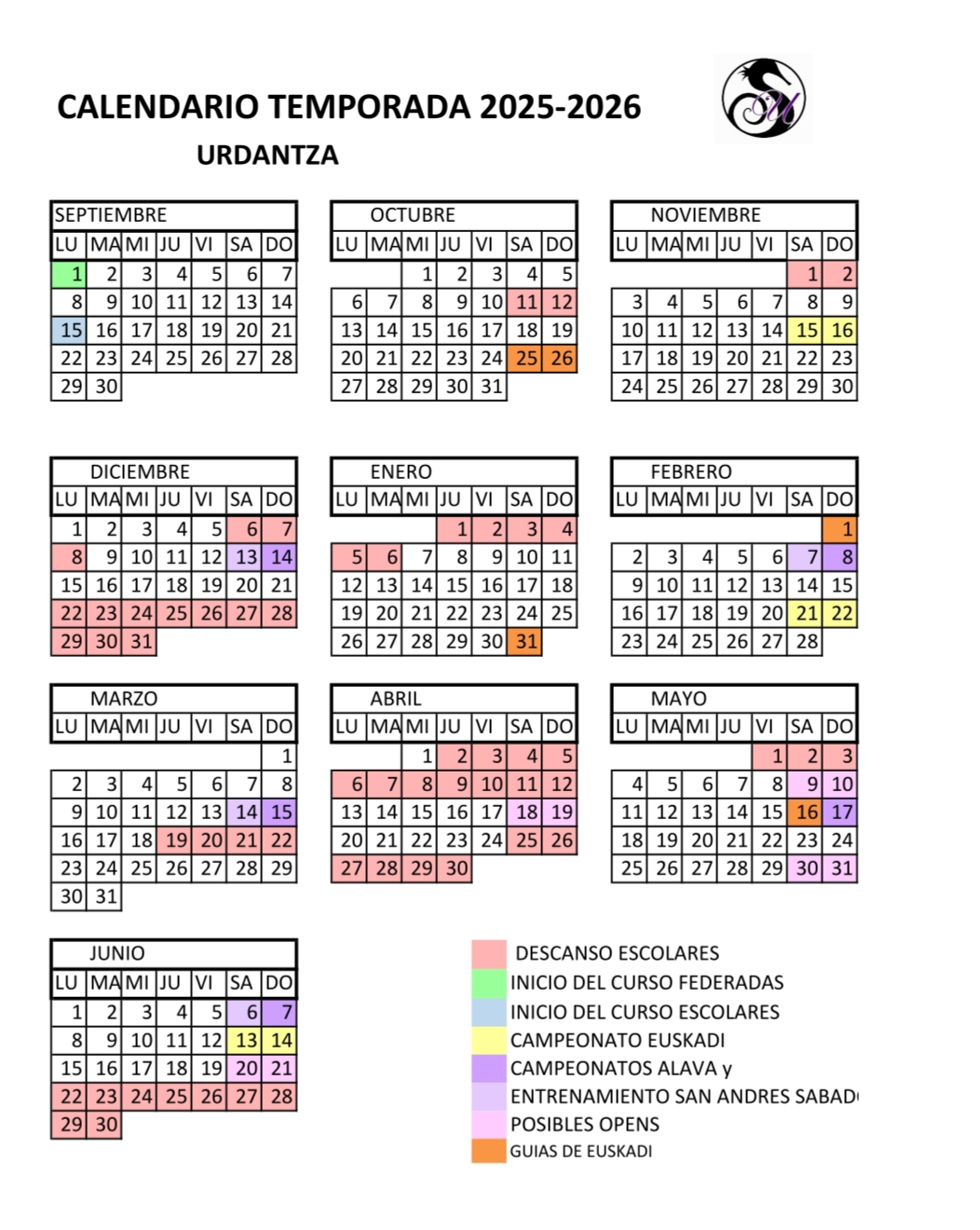 Natación Artística 2025/26 EGUTEGIA - CALENDARIO Igeriketa artistiko eskola-araudia/ Reglamento escolar de natación artística